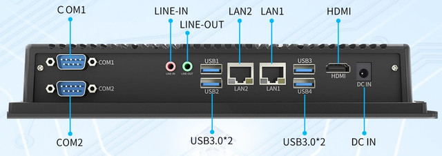 Панельний ПК P10A має багато інтерфейсів, такі як численні порти USB / RJ45 / DB9 / HDMI та інші порти вводу/виводу, з високою гнучкістю, що дозволяє користувачам розширювати різні функції та легко справлятися з різноманітними сценаріями.
